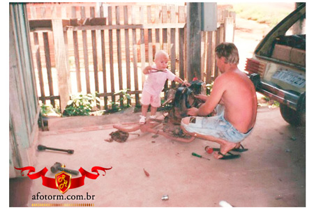 1990 - Local: Bairro Planalto. Gruta e cachoeira do bairro Planalto. Espaço GAIA AMIGA. Na foto o Indígenista Evandro e Joaquim Filho (criança). |